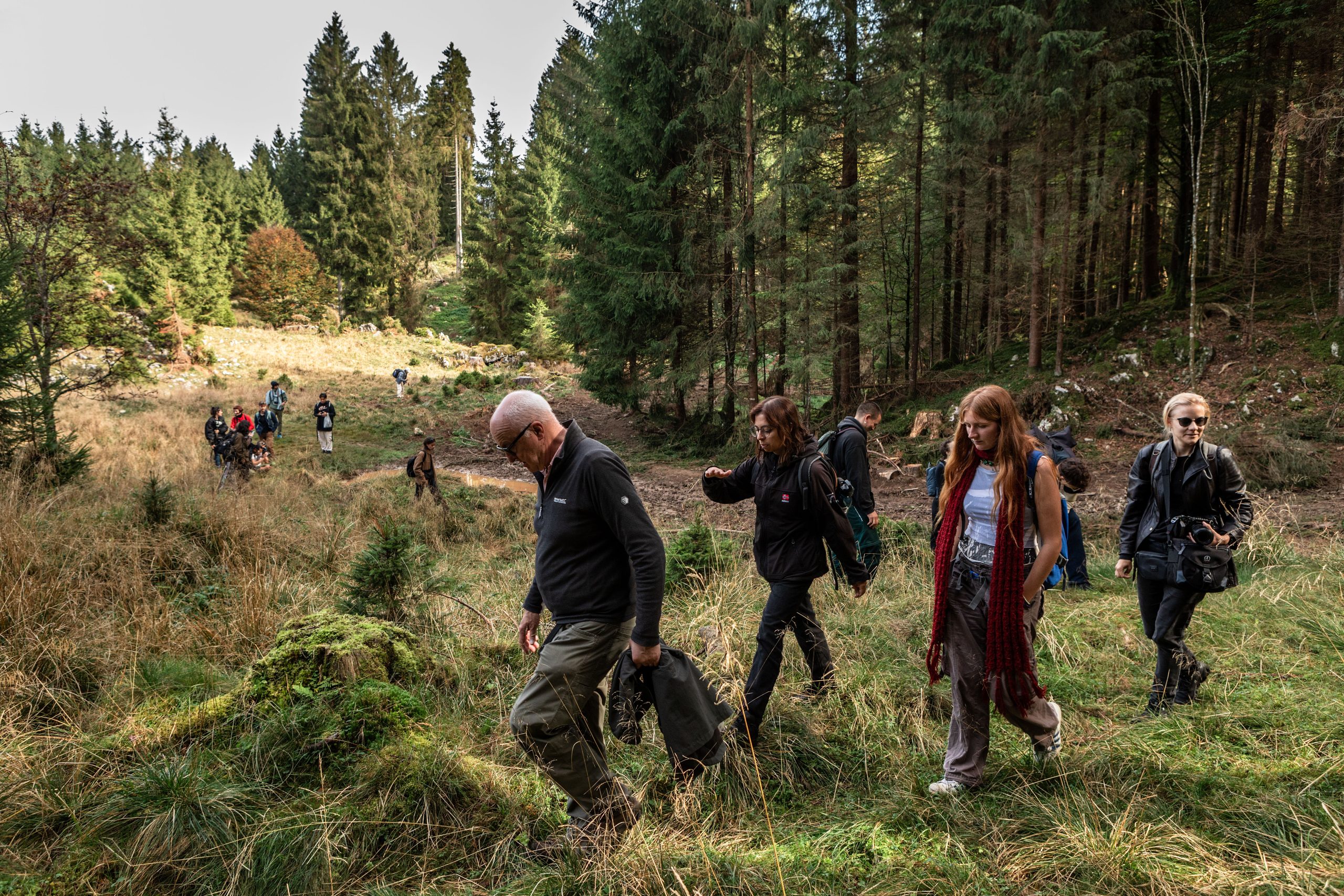 Sono queste le informazioni che i fabricanti registrano nel taccuino mentre due guide li accompagnano all’interno della foresta per l’avvistamento e l’ascolto. I cervi hanno paura dell’uomo. Per questo aspettano il calar del sole per scendere a valle a mangiare. Seduti e immobili, i fabricanti si passano il binocolo e scrutano i pascoli ai margini della foresta. Bisogna alzarsi e cambiare postazione facendo meno rumore possibile. Ogni passaggio umano genera un impatto sonoro sull’ambiente e sugli animali che lo abitano.